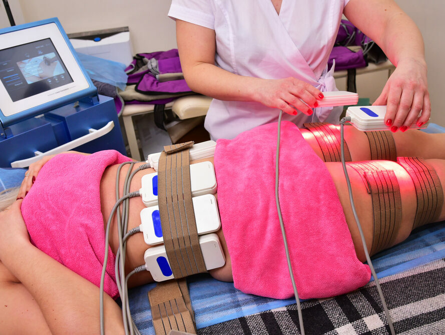 LipoLaser therapy uses low-level laser technology to target fat deposits on various body parts, including the hips, legs, back, abdomen, arms, and face. The laser energy stimulates the fat cells to release stored fatty acids and glycerol into the body, which can be used as energy. This process reduces fat and enhances skin elasticity by increasing collagen and elastin production, helping to tighten and tone sagging skin.